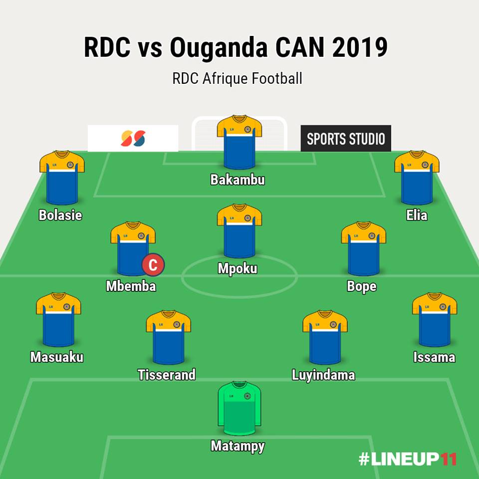 Ley MATAMPI (G), Djos ISSAMA, Christian LUYINDAMA, Marcel TISSERAND, Arthur MASUAKU, Merveille BOPE, Chancel MBEMBA (c), José MPOKU, Meschak ELIA, Cedric BAKAMBU, Yannick BOLASIE pic.twitter.com/sbMUQxQ325— RDC Afrique-Football (@RDCAfrikFoot) 22 juin 2019