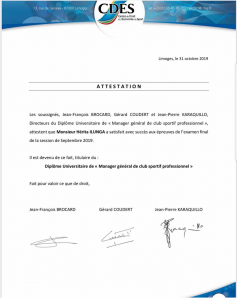 L’ancien joueur de Saint Étienne détient désormais un diplôme universitaire de “Manager Général” de club sportif professionnel”.