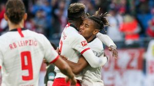 Christopher Nkunku titulaire, et double passeur décisif à la (30e minute et 48e minute) et buteur à la 35e minute et Nordi Mukiele titulaire et buteur à la 50e minute avec RasenBallsport Leipzig.