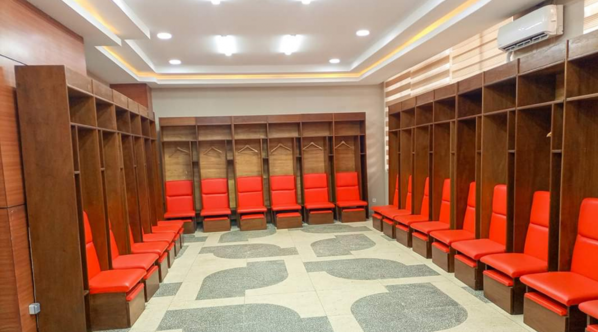 La finalisation des 4 vestiaires sur les 6 du stade des martyrs vont débuter ce mardi 9 mars 2021. La société Graphique 2000 a reçu ce Lundi 8 mars 2021 , un container qui lui permettra de finaliser les travaux.
