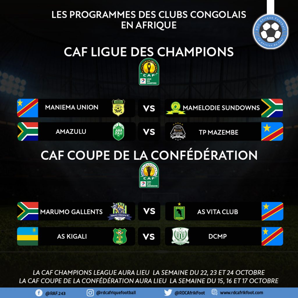 Pour une première dans l’histoire, trois(3) clubs sud africain affronteront trois (3) clubs congolais. Deux en Ligue des champions de la CAF et un en coupe de la confédération de la CAF.