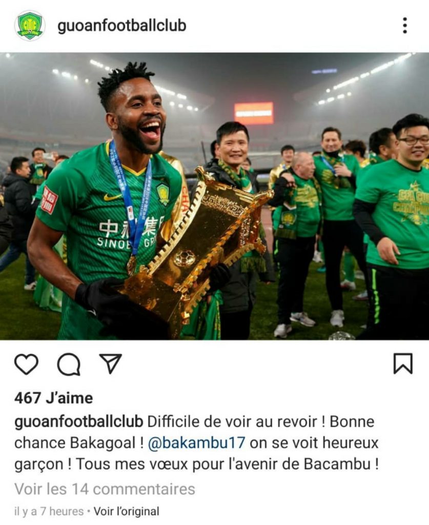 L’annonce a été faite cet après-midi par le club chinois de Beijing Guoan via ses réseaux sociaux.