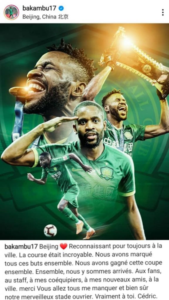 C‘est désormais officiel, Cédric Bakambu et le Beijing Guoan, c’est terminé après 4 bonnes saisons du léopard chez les Chinois