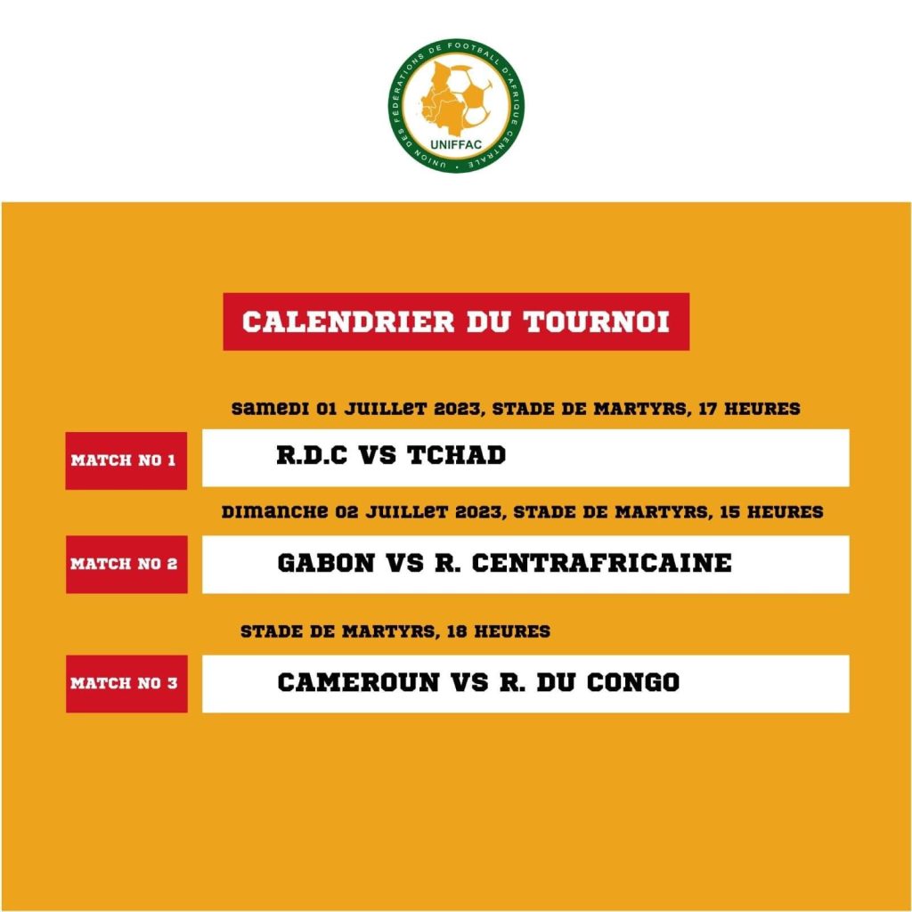 Après ce tirage, le calendrier prévoit la rencontre d’ouverture le samedi 01 juillet 2023 au stade des martyrs à 17h00, entre la RDC pays hôte contre le Tchad.